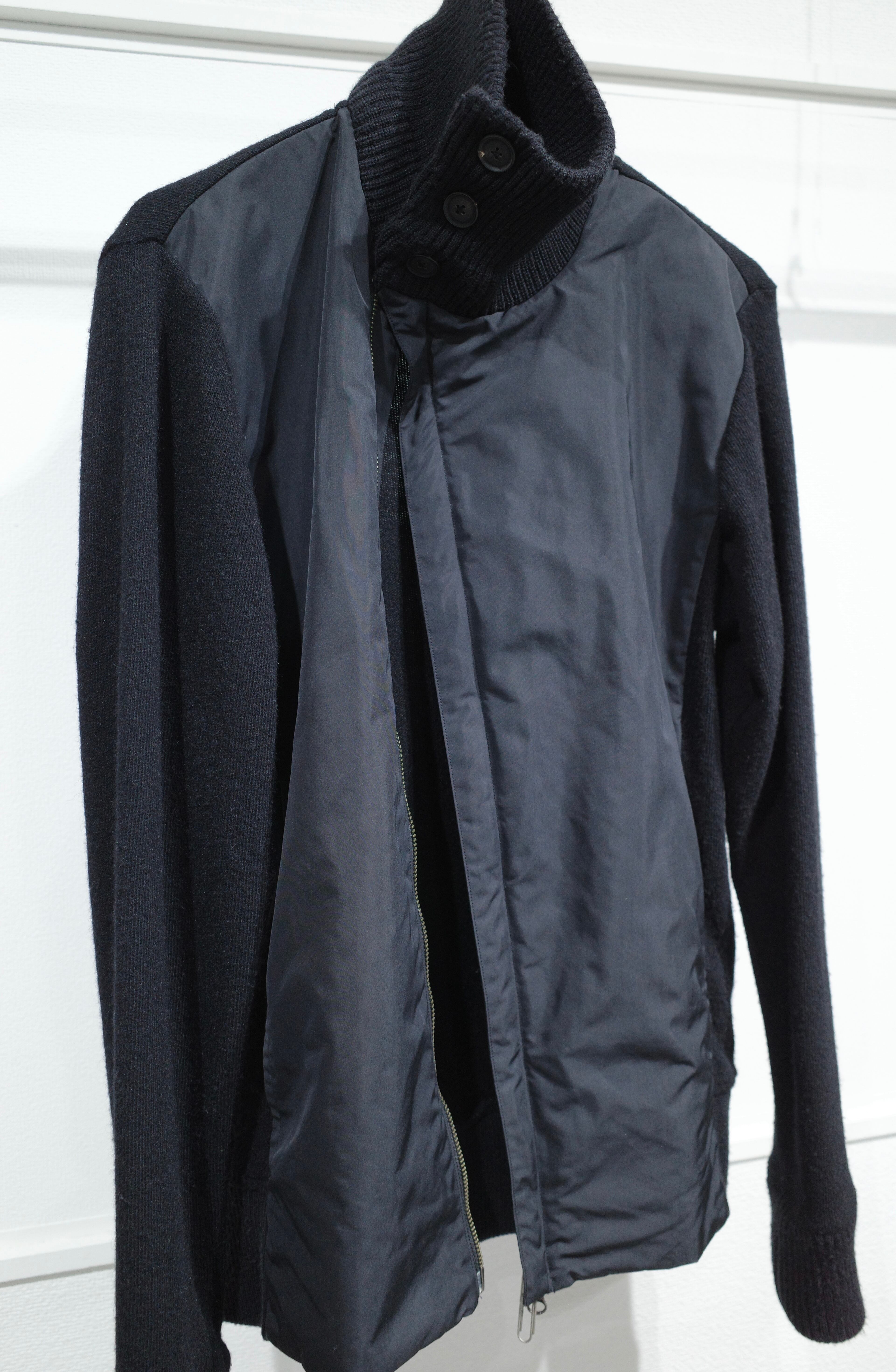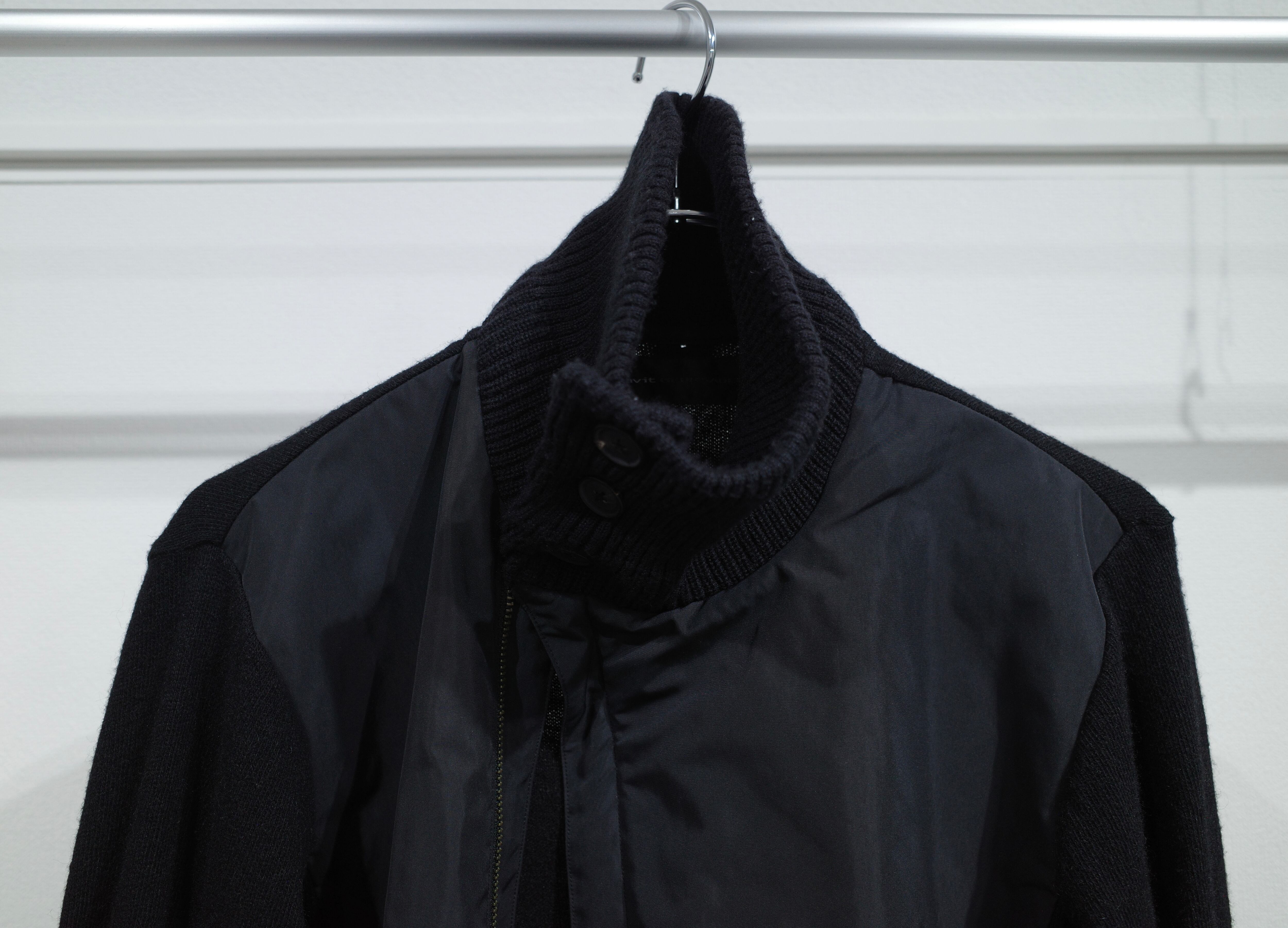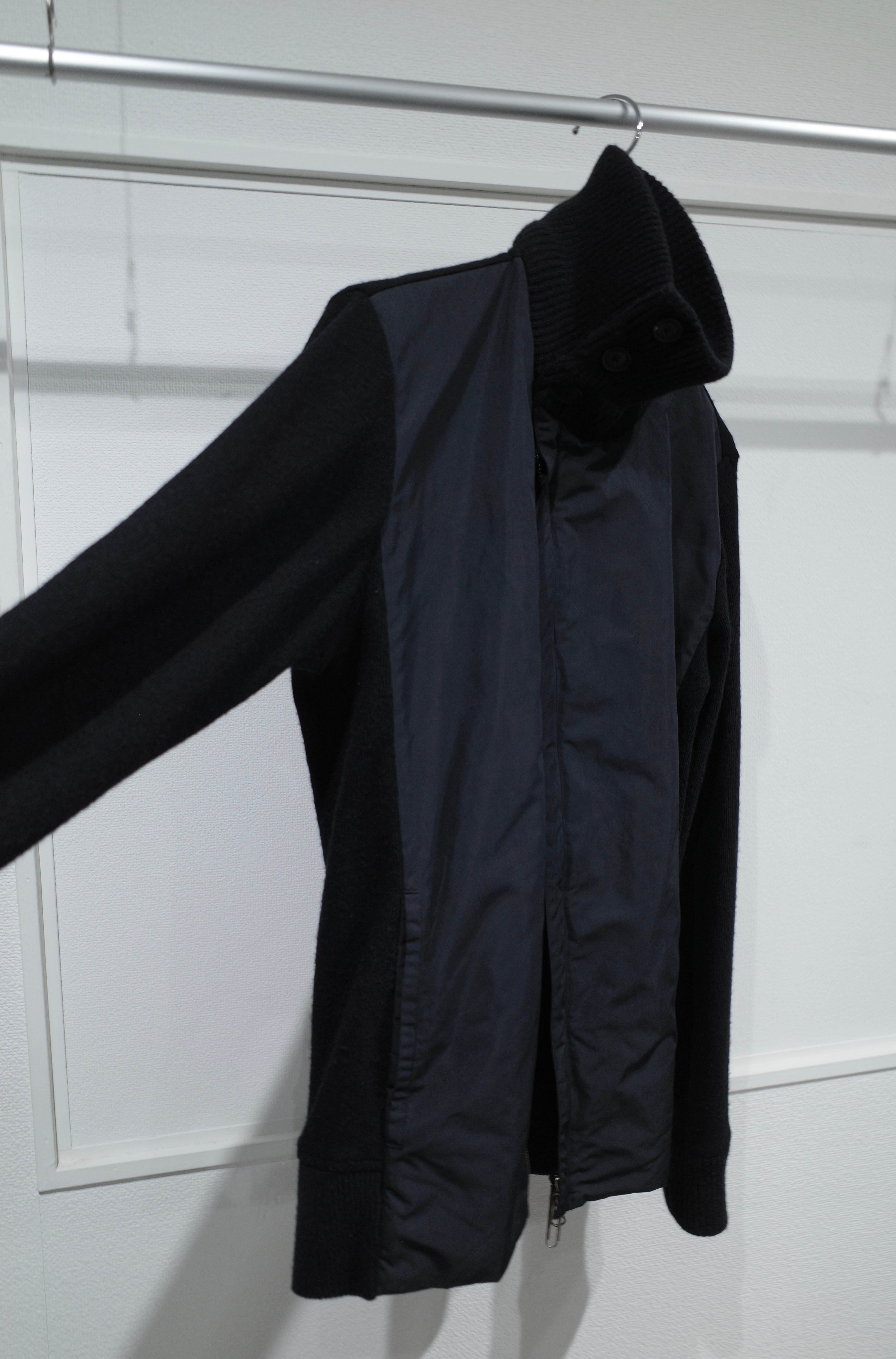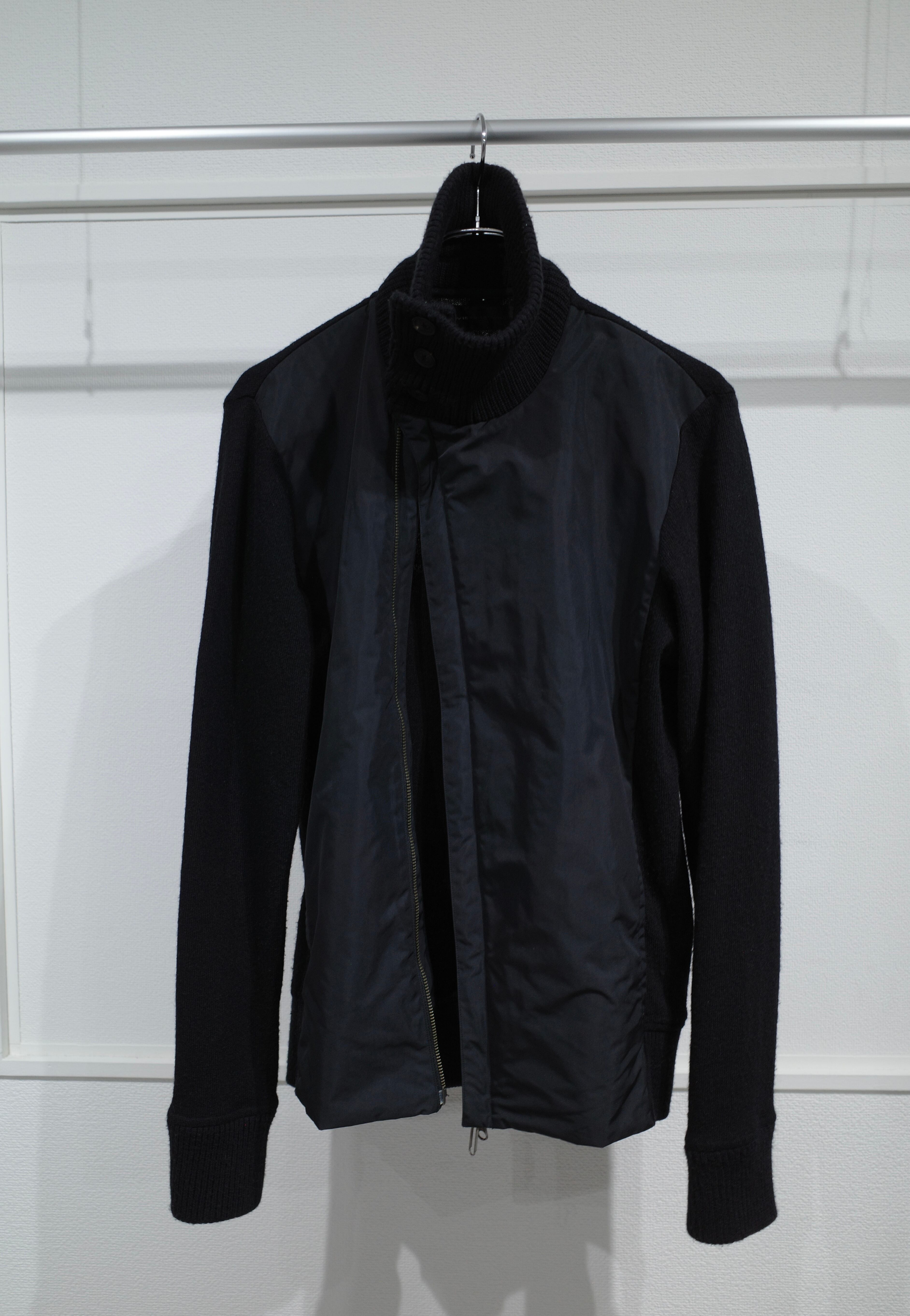 switching nylon double-zip knit blouson